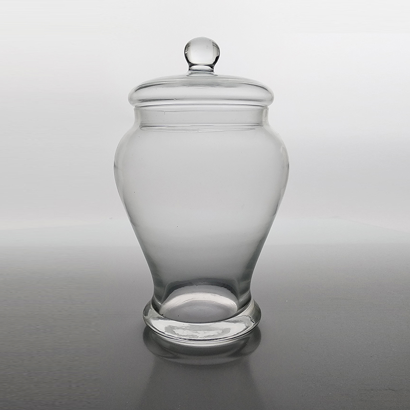 Vaso in vetro soffiato a bocca con coperchio. Ideale per contenere alimenti sfusi o da somministrazione al dettaglio.